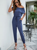 Drawstring Waist Short Sleeve Jogger Jumpsuit