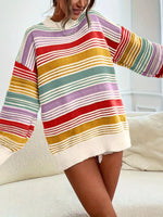 Rainbow Striped Drop Shoulder Oversized Sweater